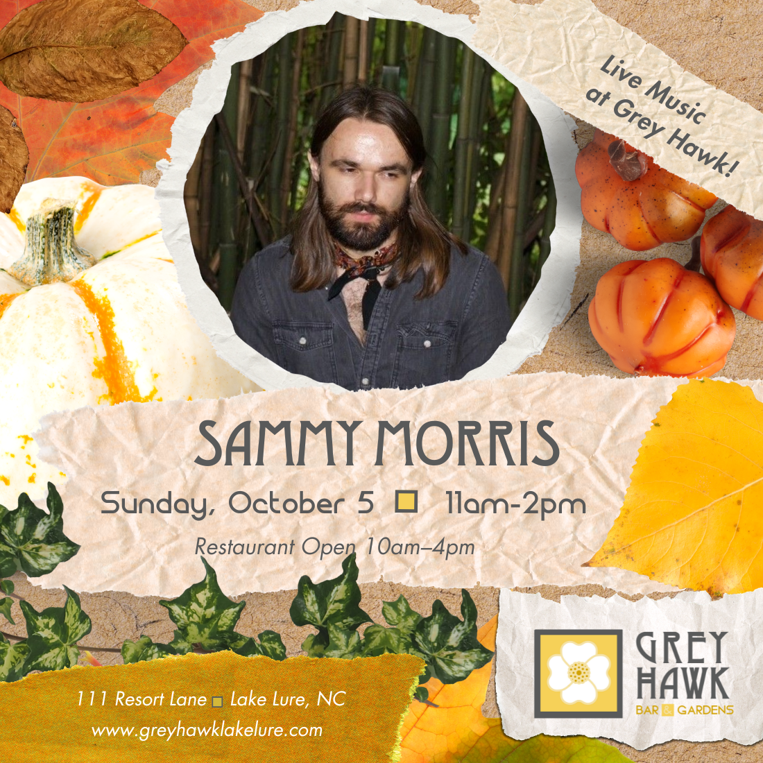 Sammy Morris performs at Grey Hawk Bar & Gardens! He takes the stage from 11am-2pm – and we’re open from 10am-4pm for brunch & lunch!